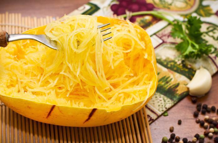 Tato tykev pochází z Japonska a svůj název získala díky své specifické dužině, která se po uvaření či s přibývající zralostí rozpadá na jednotlivá vlákna, připomínající špagety. Tato vlákna lze oddělit a ve vařeném stavu je podávat na způsob těstovin jako jejich nízkokalorickou variantu. Rostlina je plazivá, plodí oválné plody žluté barvy. Tykve dorůstají hmotnosti přibližně 2 kg. Doba zrání je okolo 90 dní. Jedná se o poměrně odolné rostliny, takže je možné buď semena předpěstovat nebo je sázet přibližně v polovině května přímo na venkovní záhon. S předpěstováním semen můžete začít už v březnu či dubnu. Doba klíčení je zpravidla 1–2 týdny. Rostliny přesazujeme na slunné stanoviště až v druhé polovině května, resp. v době, kdy již nehrozí ranní mrazíky, neboť tykve špatně snáší mrazy. Rostliny sázíme do sponu 150 x 100 cm (nebo více). Tykve lze uchovávat na chladném místě poměrně dlouhou dobu.