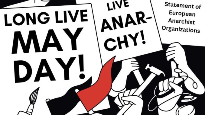 My, evropské anarchistické organizace podepisující toto komuniké, přejeme všem pracujícím v Evropě a na celém světě šťastný a bojovný první máj.