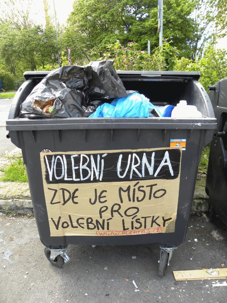 Tak jako každé volby, jako anarchisté a anarchistky, nevyslyšíme hlasy o volbě „menšího zla“, nebudeme dávat legitimitu kapitalismu a hraní si na „demokracii“. Chceme společnost, kde si lidé vládnou sami pomocí obecních a výrobních samospráv, kde řídí chod společnosti, výrobu i distribuci. Když usilujeme o vytvoření světa, kde nebude vládnout člověk nad člověkem, nemůže si žádné vládce volit a dávat jim svůj hlas. Proto naše volební lístky končí v našich vlastních volebních urnách určených na recyklaci papíru! Následujte náš příklad, recyklujte, nedávejte hlas žádnému politikovi a politické straně!
