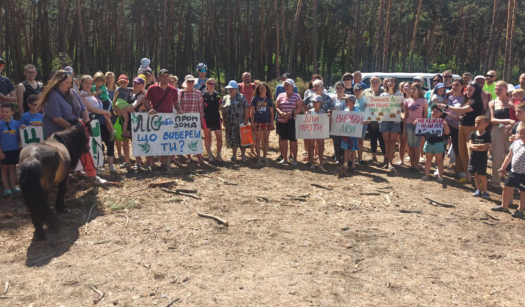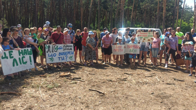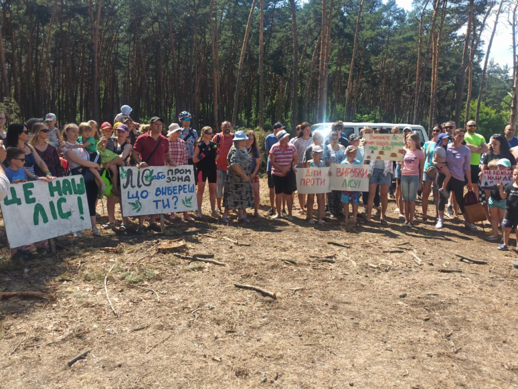 když byl tento les uměle vysazen za sovětských časů aby sloužil jako plantáž pro těžbu dřeva, nyní má status přírodní památky. Boj proti odlesňování za účelem těžby písku v Žihaři vzplál podruhé od minulého léta. Před rokem se společnost Geosand LLC za tímto účelem pokusila obsadit 19.5 hektarů jen půl kilometru od jižního okraje této čtvrti. Díky čtenářům Assembly a další zaujaté veřejnosti nebyl tento plán schválen. Můžete si o tom přečíst v Ukrajinštině nebo v Angličtině. Jiný masový protest v roce 2020 zastavil těžbu plynu v bezprostřední blízkosti osady největším Ukrajinským kapitalistou Rinatem Achmetovem.