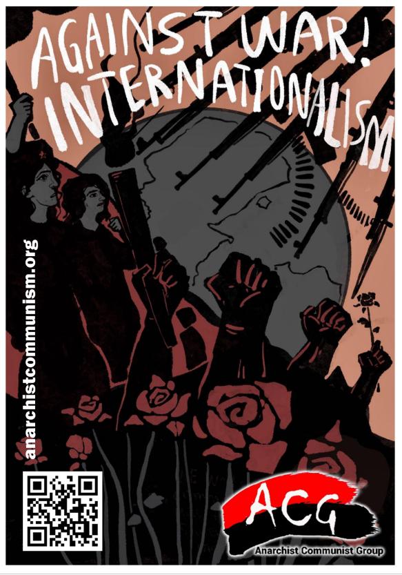 At this Anti-militarist Congress the Anarchist Communist Group (UK) reiterates its adherence to working class internationalism and our refusal to align with one imperialist bloc or another, with one national faction of the ruling class or another.